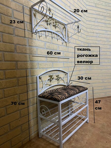 Изделия выполнены с использованием технологии горячей ковки, что обеспечивает прочность и надежность конструкции. Дополнительный защитный слой, полученный благодаря порошковой покраске, делает поверхность устойчивой к повреждениям и облегчает уход за мебелью. Прихожая включает в себя всё необходимое для удобного хранения обуви и верхней одежды, а также предлагает достаточно места для аксессуаров.