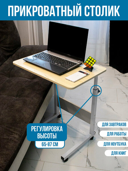 Приставной столик с регулировкой высоты - это идеальное решение для комфортной работы с ноутбуком. Складной столик для ноутбука значительно повысит уровень комфорта работы и предотвратит перегрев компьютера или планшета. Модель предназначена для работы с ноутбуками и планшетами. Компьютерный стол на кровать обеспечивает максимальное удобство и эргономичность. Подставку для компьютера удобно устанавливать у дивана, кресла или кровати. Офисная мини парта для удаленной работы. Можно использовать как сервировочный стол для завтрака в постель. Если вы хотите, задвинуть стол под мебель, просто снимите колесики и задвиньте его под каркас кровати. Не нужно больше сидеть в месте, которое не соответствует вашему росту или не имеет возможности регулировки высоты. На поверхности столика можно разместить дополнительные аксессуары и письменные принадлежности. Они легкие и выдерживают нагрузку до 10 кг, а все четыре колеса имеют стопоры для фиксации стола на одном месте. Можно использовать для ухода за маломобильными людьми, бабушками и дедушками. По окончанию работы конструкция складывается и с лёгкостью помещается в шкаф, не загромождая пространство комнаты. Отличный вариант раскладной мебели для гостиной, спальни, детской. Небольшая столешница выполнена из древесноволокнистого материала. В нашем магазине складной игровой геймерский стол представлен в разных цветах черный/черно-белый/белый и бежевый для любого интерьера, лофт, классик, модерн. Детский столик можно выкатить на балкон или отвезти на дачу для игр на свежем воздухе. А можно использовать для долгих игр в ноутбуке. Можно использовать на кухне для кормления маленьких детей или банкетка в прихожую. Деревянная мебель для дома, обустройство и ремонт. Отличный вариант подарка любимому человек или друзьям.