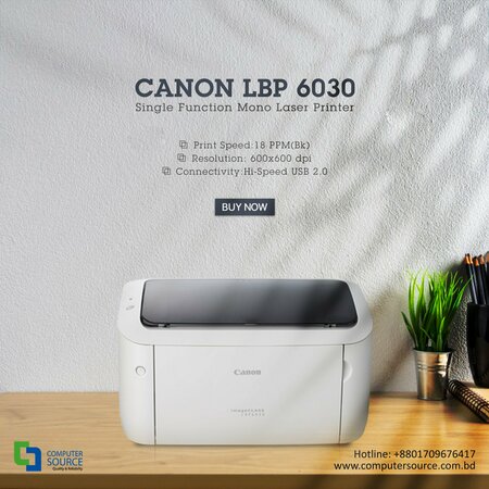 Принтер Canon ImageClass LBP-6030 - это черно-белый лазерный принтер, который обеспечивает высокое качество печати. Он предназначен для работы с документами формата A4 и подходит для использования в домашних условиях или в небольших офисах. Принтер обладает высокой скоростью печати - до 18 страниц в минуту. Время разогрева составляет всего 10 секунд после включения питания, а время печати первого листа - всего 7,8 секунды. Принтер Canon LBP6030B оснащен функцией печати без полей, что позволяет экономить место на бумаге. Устройство имеет компактные размеры (364 x 249 x 198 мм) и стильный черный дизайн со съемной крышкой лотка для бумаги. Принтер Canon LBP6030B использует технологию лазерной печати, которая обеспечивает высокую детализацию и четкость текста. Высокое разрешение печати достигает 2400 x 600 точек на дюйм, что позволяет получать документы с высоким качеством изображения. Принтер Canon LBP6030B работает практически бесшумно, благодаря технологии Canon Quick First-Print, которая позволяет быстро выходить из спящего режима. Принтер Canon LBP6030B оснащен USB-интерфейсом для подключения к компьютеру или ноутбуку. Картридж «Всё в одном» обеспечивает надежную и качественную печать. Оригинальные картриджи Canon можно заменить за считанные секунды без лишних действий и грязи.