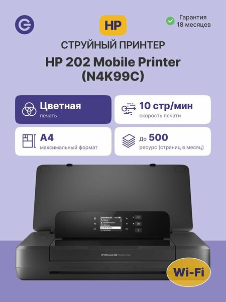 Принтер струйный HP OfficeJet 202 Mobile (N4K99C), официальная гарантия