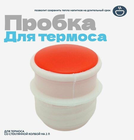 Термос - приспособление, которое необходимо в повседневности тем, кто часто куда-то ездит или путешествует. Пробка для термоса-гильзы позволит сохранить тепло напитков длительный срок, поэтому вы сможете наслаждаться их вкусом на протяжении целого дня. Данное изделие изготовлено из безопасного для здоровья пластика, который не вступает в реакцию с пищей и не плавится от воздействия кипятка. Черная пробка подходит для термоса вместительностью 750 мл и 1000 мл. и 500 мл, 350 мл. Размеры изделия - 6,5х6,5 см, 4,8 х 4,8 см, подойдут для горлышек на 5 см и 4 см. Пробка для термоса клапан. Так же в данной карточки представлены пробки для термосов со стеклянной колбой. В наличии пробки на 2 л и 3.2. л объемов для термосов.