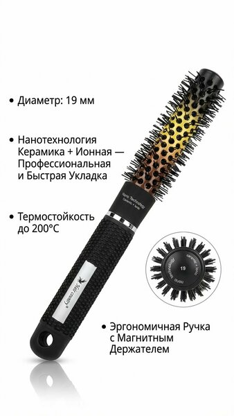 Хотите укладывать волосы как профессионал! С помощью этих керамических брашинг расчесок вы легко добьётесь салонного результата у себя дома! Круглая форма расчески равномерно распределяет тепло, быстро и аккуратно сушит волосы, придаёт объем и помогает создавать локоны. Характеристики: Диаметры: 19мм, 25мм, 32мм, 45мм, 53мм — подходят для разной длины волос Керамическое покрытие — укладывает волосы без повреждений Удобная ручка — не скользит в руке Легко укладывает волосы Делает волосы ровными и гладкими Помогает создавать локоны Красивая и стильная укладка каждый день — теперь и у вас дома! Брашинг для укладки волос – это надежный инструмент, который поможет вам добиться безупречного стайлинга. Независимо от того, хотите ли вы создать объем у корней, сделать мягкие локоны или идеально выпрямить пряди, эта круглая расческа справится с любой задачей. Ионно-керамическое покрытие рабочей поверхности способствует быстрому нагреву и равномерному распределению тепла, что делает процесс укладки более щадящим и эффективным. Это особенно важно при использовании фена, так как снижает риск перегрева и повреждения волос. Дополнительный антистатический эффект предотвращает появление пушистости, делая волосы гладкими и шелковистыми. Скользящая поверхность значительно облегчает процесс укладки, увеличивая скольжение. Профессиональный термобрашинг подойдет как для домашнего использования, так и для парикмахерских и салонов красоты. Его эргономичная прорезиненная ручка обеспечивает надежный захват, не скользит в руке и делает процесс формирования прически максимально комфортным. Благодаря крупным вентиляционным отверстиям в корпусе, горячий воздух фена проходит через него равномерно, снижая время укладки и предотвращая пересушивание волос. У нас представлены расчески разных диаметров от больших до маленьких (19, 25, 32, 45 и 53 мм), что позволяет выбрать подходящий вариант в зависимости от длины и густоты волос. Расческа брашинг станет отличным подарком для женщин, которые заботятся о своей красоте.