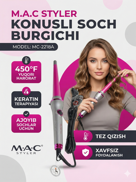 {"widgets":{"@card/UniversalPromoBadge":{"/content/page/fancyPage/defaultPage/universalPromoBadge":{"wrapperProps":{"margins":{"bottom":"3"}},"initialTime":1771556138889,"offerComposeId":"6962190931132651344"}}},"meta":{"/content/page/fancyPage/defaultPage/universalPromoBadge":{"name":"@card/UniversalPromoBadge"}},"collections":{"productServiceSnippets":{"6962190931132651344":{"productSnippet":{"snippetId":"document_id","type":"MODEL_CARD_LAYOUT","productPayload":{"snippetStyle":"NORMAL","title":{"value":"Профессиональная конусная плойка MAC Stayler , с керамическими пластинами"},"badges":{},"price":{"actualPrice":{"amount":{"intPart":199000,"currency":"UZS"},"style":"RED","type":"OTHER_DISCOUNT"},"oldPrice":{"amount":{"intPart":295000,"currency":"UZS"},"style":"STRIKETHROWED"}},"gallery":{"mediaItems":[{"picture":{"baseUrl":"https://avatars.mds.yandex.net/get-mpic/18041007/2a0000019c156e5475ee01570d33ee69b3a0/","width":1493,"height":2000,"title":"Профессиональная конусная плойка MAC Stayler , с керамическими пластинами"},"type":"IMAGE"},{"picture":{"baseUrl":"https://avatars.mds.yandex.net/get-mpic/15294448/2a0000019c156e54754ee119d3923d0a8da2/","width":1080,"height":1440,"title":"Профессиональная конусная плойка MAC Stayler , с керамическими пластинами"},"type":"IMAGE"},{"picture":{"baseUrl":"https://avatars.mds.yandex.net/get-mpic/17698016/2a0000019c156e54d29932fe204c1c736885/","width":1080,"height":1440,"title":"Профессиональная конусная плойка MAC Stayler , с керамическими пластинами"},"type":"IMAGE"},{"picture":{"baseUrl":"https://avatars.mds.yandex.net/get-mpic/13733939/2a0000019c156e5475a85230ad16663bdb4a/","width":1080,"height":1440,"title":"Профессиональная конусная плойка MAC Stayler , с керамическими пластинами"},"type":"IMAGE"},{"picture":{"baseUrl":"https://avatars.mds.yandex.net/get-mpic/18137160/2a0000019c156e547418f2398714d5f40cea/","width":1080,"height":1440,"title":"Профессиональная конусная плойка MAC Stayler , с керамическими пластинами"},"type":"IMAGE"},{"video":{"url":"https://runtime.strm.yandex.ru/player/video/vplv6w2g4yoecbdt5ldc","width":720,"height":1280,"title":"Профессиональная конусная плойка MAC Stayler , с керамическими пластинами","preview":{"baseUrl":"https://avatars.mds.yandex.net/get-mpic/16487691/2a0000019b27fdb511d398a8afbc5e89f2ab/","width":720,"height":1280,"title":"Профессиональная конусная плойка MAC Stayler , с керамическими пластинами"},"streams":[{"type":"dash","url":"https://strm.yandex.ru/vod/vh-market-upload-converted/vod-content/vplv6w2g4yoecbdt5ldc/0f664784-4ee1-45e9-9406-82a8a80dcf61/kaltura/desc_84532a5b630d528084323bbb55f8190d/x/ysign1=40b6503cbf8d418f213c2b12936b2a43791e4441fa060ae6da45c92200f86543,abcID=56084,chID=vplcw5a4be2almmy7knw,pfx,sfx,ts=699a702a,video=vplv6w2g4yoecbdt5ldc/manifest.mpd?packager=1&packman=1"},{"type":"hls","url":"https://strm.yandex.ru/vod/vh-market-upload-converted/vod-content/vplv6w2g4yoecbdt5ldc/0f664784-4ee1-45e9-9406-82a8a80dcf61/kaltura/desc_84532a5b630d528084323bbb55f8190d/x/ysign1=1ff597a873c1b606c930bb18c7abd6655b49deb9fdecab26318b30512d08dc2b,abcID=56084,chID=vplcw5a4be2almmy7knw,pfx,sfx,ts=699a702a,video=vplv6w2g4yoecbdt5ldc/master.m3u8?packager=1&packman=1"}]},"type":"VIDEO"}]},"wishlistButton":{"businessId":216615282,"mskuId":5087480587,"modelId":4969675843,"oskuId":5087480587,"offerId":"h3KWu7eh0EvPFhbnc-u8CA"}},"baobabPayload":{"type":"offer","wareId":"h3KWu7eh0EvPFhbnc-u8CA","modelId":4969675843,"marketSku":"5087480587","snippet_type":"product","isExpress":false,"price":295000,"additionalPrices":[{"priceType":"withDiscount","priceValue":199000},{"priceType":"unknown","priceValue":295000}],"hid":70391864,"shopId":431782,"shopSku":"dcmp-9515458144773940763","supplierId":216615281,"supplierType":3,"isUltima":false,"oskuId":5087480587,"snippetTheme":"GRID_FULL","stockCount":150,"promoLogJoinId":"e9e33fc41919b276fa21c72f827bb417/fe59ab7e76867d35"},"themeType":"GRID_FULL"}}}}}