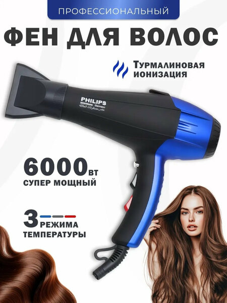 ВАШ инструмент для здоровых И красивых волос! мощность И технологии профессионала дома: -мощность 6000 Вт(написано): Мгновенно высушивает даже самые густые и длинные волосы без пересушивания! Экономит ваше время утром. 2 интеллектуальных режима: Точный контроль температуры (горячий/теплый) + 2 скорости воздушного потока. Защита от перегрева встроена! Бережное отношение к волосам. Регулировка температуры и скорости: фен предлагает несколько режимов работы, включающих различные комбинации температуры и скорости воздушного потока. Это позволяет выбрать оптимальные настройки в зависимости от типа волос и желаемой укладки. функция ионизации — главный секрет здоровья: Генерирует миллионы отрицательных ионов, которые: Нейтрализуют статическое электричество — никаких "одуванчиков"! Увлажняют волосы изнутри — предотвращают сухость и ломкость. Закрывают кутикулу — волосы становятся гладкими, блестящими, послушными! ✨ ❄ кнопка холодного воздуха: Мгновенно "запечатывает" укладку, придает объем у корней и фиксирует форму прически. удобство И безопасность на первом месте: эргономичный И нескользящий корпус: Специальное мягкое покрытие обеспечивает надежный, комфортный хват даже влажными руками. Тонкий дизайн корпуса идеально ложится в ладонь. съемный сетчатый фильтр: Легко чистится от пыли и ворса, защищая мощный мотор и продлевая срок службы фена в разы! петля для подвешивания: Удобно хранить в ванной или гардеробной — экономия места. Всегда под рукой! суперлегкий И компактный (всего ~450г!): Не утомляет руку при длительной сушке или сложной укладке. Идеален для путешествий! сженный уровень шума: Комфортная сушка без оглушительного грохота. длинный вращающийся шнур (2.5 м): Свобода движений! Philips PH8080 фен профессиональный фен фен для волос фен для укладки салонный фен мощный фен 3000 Вт фен с диффузором фен для сушки волос фен для дома фен женский фен мужской фен парикмахерский профессиональный фен для волос быстрый фен для укладки