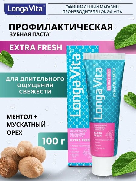 {"widgets":{"@light/ProductM2bEdoOnlyBadge":{"/content/page/fancyPage/defaultPage/m2bEdoOnlyBadge":{"wrapperProps":{"margins":{"top":"2"}},"isM2bEdoOnlyEnable":false}}},"meta":{"/content/page/fancyPage/defaultPage/m2bEdoOnlyBadge":{"name":"@light/ProductM2bEdoOnlyBadge"}},"collections":{"views":{"defaultOffer":"vi_16165441225684090518_bi_5188321472543369139"},"viewItem":{"vi_16165441225684090518_bi_5188321472543369139":{"id":"vi_16165441225684090518_bi_5188321472543369139","composeId":"16165441225684090518","buyOptionId":"bi_5188321472543369139"}},"buyOption":{"bi_5188321472543369139":{"id":"bi_5188321472543369139","title":"Зубная паста Longa Vita EXTRAFRESH, ментол и мускатный орех, защита от кариеса","offerId":"h_Vo793EzFvQCS86k-1JZQ","slug":"profilakticheskaya-zubnaya-pasta-extrafresh-longa-vita","trackingLinks":{"cpa":"/w7nq4KI1VH_orR-SlvHAL7Ejwlbs","promotionUrl":"/GR8K_PwIknw_sIyASCvufdo1gtco"},"skuId":"4728253865","productId":"1442314261","categoryId":"64097957","navnodeId":"64099929","departmentId":"37497550","showUid":"17717161164039186609106001","counterStep":1,"minimum":1,"maximum":8,"price":{"value":39536,"currency":"UZS"},"vendorId":"12485141","feeShow":"OTNDnItfwRMlLJby2gHopVufoKGiXjRXCNwowSB9Oj448lbYl7po33ORJeX8Hx9v1SwEU1jIc3olFlh7R7BdgkF-USeDfmHf94MmumniFVs22MEXh-JmilpZff3o0bWW7GskHe5goWRZIuKjdE4LJ3a7Ee5UMnTRMl1nfgKD8_qAtCIzyeRo51guXB9eEaKIVr73_4rNOJkt77TbkwozwHJ79NKyKraEEpu9b2Lc5wNv_VPs3EMjESzcTwx8flWArzKtNcwF9QkgAg-IKvlBPCqsBpdD-iMIP9w8cblv6QykoVqXa5p1fQ,,","feedId":"58335948","feedOfferId":"58335948.LV-EXTRAFRESH","shopId":"431782","supplierId":"581526","businessId":"759727","supplierName":"НТМ","businessName":"НТМ","hasAnySize":false,"hasAnyDelivery":true,"benefitTypeCode":"waremd5","basePrice":{"value":85090,"currency":"UZS"},"promos":[{"key":"LOOqC1PMMMv9fBm2eAYOeA","type":"direct-discount","shopPromoId":"price_increase_promo_581526_dd","anaplanId":"price_increase_promo_581526_dd","landingUrl":"https://market.yandex.ru/special/direct-discount-landing?shopPromoId=price_increase_promo_581526_dd"},{"key":"xD1-78LDt8ve5lk-5jj0FQ","type":"empty-promo","shopPromoId":"cf_135726","anaplanId":"cf_135726","landingUrl":"https://market.yandex.ru/special/empty-promo-landing?shopPromoId=cf_135726"}],"flags":["isVisual","isFby","isOnDemand","isCrossborder"],"analytics":{"warehouseId":"313","paymentType":"ANY","paymentMethodTypes":["BY_CARD_ONLINE","BY_CARD_TO_COURIER","IN_CASH"],"deliveryOptions":[{"deliveryType":"pickup","fromDate":1772580116,"toDate":1772580116,"priceInfo":{"value":0,"currency":"UZS"}},{"deliveryType":"pickup","fromDate":1772580116,"toDate":1772580116,"priceInfo":{"value":0,"currency":"UZS"}},{"deliveryType":"delivery","fromDate":1772580116,"toDate":1772580116,"priceInfo":{"value":0,"currency":"UZS"}}],"shopSku":"LV-EXTRAFRESH","placementType":"3P","ownMarketPlace":true,"shopSlug":"yandex-market","yandexBnplInfo":{"enabled":true},"promos":[{"key":"LOOqC1PMMMv9fBm2eAYOeA","type":"direct-discount","shopPromoId":"price_increase_promo_581526_dd","value":54,"landingUrl":"https://market.yandex.ru/special/direct-discount-landing?shopPromoId=price_increase_promo_581526_dd","isPersonal":false},{"key":"xD1-78LDt8ve5lk-5jj0FQ","type":"empty-promo","shopPromoId":"cf_135726","landingUrl":"https://market.yandex.ru/special/empty-promo-landing?shopPromoId=cf_135726","isPersonal":false,"description":"Новые_акции_для_лендингов_полок_УЗБ_Beauty_1201"}],"hypeBadge":{"hasBadgeRare":false}},"deliveryType":"PICKUP","imageMeta":{"namespace":"mpic","groupId":5175047,"key":"2a0000019642d99de2a7e2047900a2b6fdbf"}}},"market2Business":{"current":{"id":"current","isM2b":false}}}}