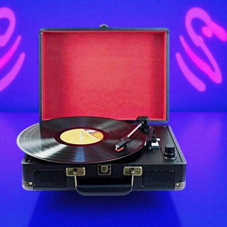 Проигрыватель виниловый, модель VP-102. Портативный виниловый проигрыватель выполнен в ретро‑стиле: в сложенном состоянии он напоминает дипломат.