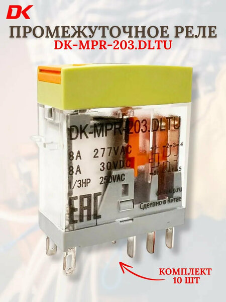 Реле серии DK-MPR позволяют коммутировать как управляющие, так и силовые цепи. В корпусе компактного размера смонтированы две группы переключающих контактов, рассчитанных на токи до 8 А. Описание DK-MPR-203. DLTU: DK-MPR-203. DLTU 24 VDC, 2 перекл. контакта 8 A / 250 VAC, ручной дублер, мех. индикатор. Преимущества силовых реле серии DK-MPR: