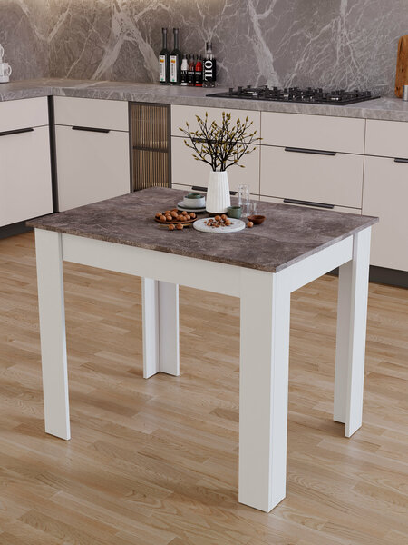 Стол для кухни сочетает в себе практичность и лаконичность, удобство и комфорт. Для обеденного стола выбрано эффектное контрастное сочетание оттенков: классическая композиция, сочетающая в себе древесные волокна. Сочетание текстур несомненно, оценят любители стильных и необычных решений в интерьере. Дополнительную выразительность придают модели столика оригинальные ножки, выполненные в форме уголка. Компактные размеры 90*67 см позволяют найти место для стола даже в небольшой кухне или на террасе. Небольшой вес делает изделие достаточно мобильным, его несложно передвинуть во время уборки. Удобный, компактный и стильный обеденный стол находка для Вашего дома! Характеристика мебели: Материал ножек/опоры, подстолья и столешницы ЛДСП. Кромка ПВХ. Габариты: высота 730 мм, длина 900 мм, ширина 670 мм. Вес 16 кг. Поставляется в разобранном виде. Все технические отверстия сделаны на производстве, фурнитура для сборки и инструкция идет в комплекте.