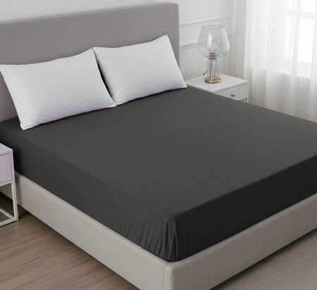 Простыня Linens 180 x 200 x 25 cm, ранфорс, на резинке, серая