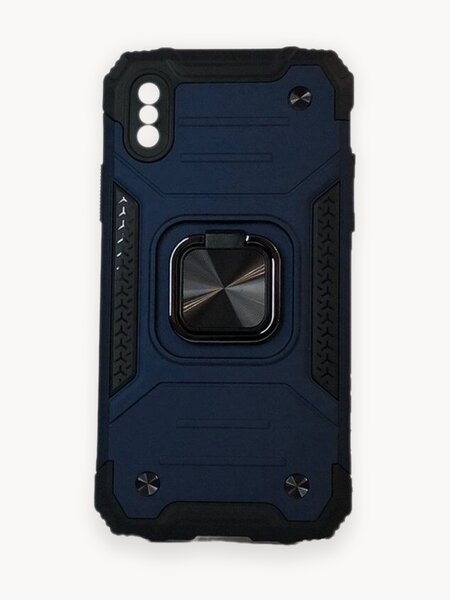 Противоударный чехол для iPhone X / XS синий с пластиной для магнитного автодержателя и кольцом подставкой