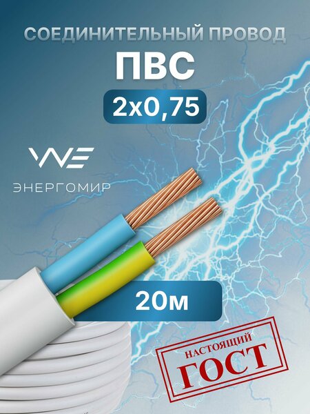 Провод соединительный ПВС 2х0,75 ГОСТ Энергомир, 20м. Провода компании "энергомир" - это электрические кабели высочайшего качества, выполненные, действительно, с соблюдением требований ГОСТ. Расшифровка маркировки: П - провод В - изоляция и оболочка из ПВХ пластиката С - соединительный Применение: Для присоединения электроприборов и электроинструмента по уходу за жилищем и его ремонту, стиральных машин, холодильников, средств малой механизации для садоводства и огородничества и других подобных машин, и приборов, и для изготовления шнуров удлинительных на напряжение до 380 В для систем 380/660 В