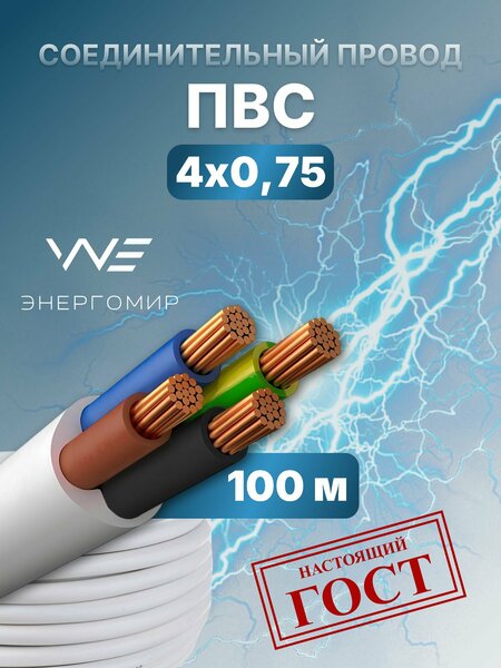 Провод соединительный ПВС 4х0,75 ГОСТ Энергомир, 100м. Провода компании "энергомир" - это электрические кабели высочайшего качества, выполненные, действительно, с соблюдением требований ГОСТ. Расшифровка маркировки: П - провод В - изоляция и оболочка из ПВХ пластиката С - соединительный Применение: Для присоединения электроприборов и электроинструмента по уходу за жилищем и его ремонту, стиральных машин, холодильников, средств малой механизации для садоводства и огородничества и других подобных машин, и приборов, и для изготовления шнуров удлинительных на напряжение до 380 В для систем 380/660 В
