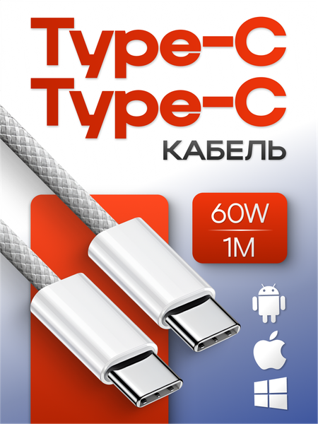 Кабель Type-C Type-C — надежное решение для быстрой зарядки и передачи данных. Этот кабель для айфона подходит для современных устройств с разъемом USB-C, включая телефоны, планшеты и ноутбуки. Провод type c type c обеспечивает высокую скорость и долговечность, что делает его отличным выбором для активных пользователей. Ключевые преимущества: - Мощная зарядка: Провод type c быстрая зарядка поддерживает мощность до 60Вт, сокращая время зарядки. - Скорость передачи данных: Шнур typec позволяет быстро обмениваться файлами между устройствами. - Прочность: Провод для зарядки телефона с нейлоновой оплеткой устойчив к изгибам и повреждениям. - Качественные разъемы: Шнур для айфона с металлическими контактами предотвращает окисление. Особенности: - Нейлоновая оплетка защищает type c кабель от износа. - Усиленные разъемы продлевают срок службы кабеля typec typec. - Провод type c type c 2 метра поддерживает быструю зарядку и передачу данных. - Длина 2 метра обеспечивает удобство использования. Совместимость: - iPhone: 15, 16 (все модели, включая Pro, Pro Max, Plus). - Samsung Galaxy: S20, S21, S22, S23, S24, Z Flip, Z Fold. - Другие устройства: Xiaomi, Huawei, Google Pixel, OnePlus с USB-C. - Планшеты и аксессуары: Подходит для устройств с Type-C. Кабель для самсунг обеспечивает надежность и скорость. Зарядник для айфона идеально подходит для ежедневного использования. Провод macbook удобен для работы и дома. Шнур для зарядки телефона станет вашим незаменимым помощником!