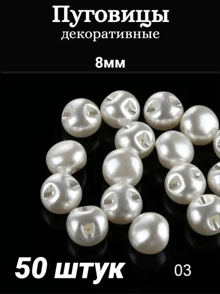 Пуговицы "Жемчуг", декоративные, молочные, диаметр 8 мм, набор 50 шт