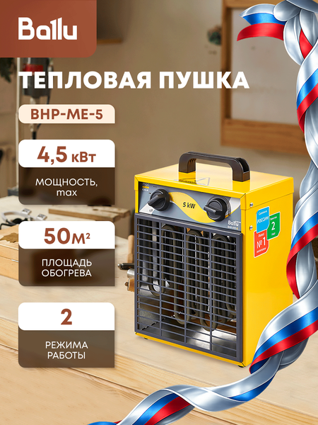 Тепловые пушки серии ME от Ballu – это настоящий прорыв в мире отопительного оборудования, созданный с учетом жестких российских условий. Они не просто справляются со своей задачей – они переопределяют стандарты надежности, функциональности и долговечности. Эти устройства работают как часы, без устали и перебоев, поддерживая тепло 24/7. Их прочный корпус с термостойким полимерным покрытием словно броня, защищающая от коррозии и истирания, а отсутствие сварных швов лишь подчеркивает их бескомпромиссное качество. Несмотря на свои компактные габариты, эти пушки – настоящие гиганты мощности, оснащенные нержавеющими ТЭНами, готовыми к самым сложным задачам в самых разных условиях: от строительных площадок до гаражей и мастерских. Изюминкой ME серии является их продуманный дизайн и функциональность: они легки и удобны в перемещении, тихи благодаря антивибрационным ножкам, а встроенный термостат обеспечивает защиту от перегрева. С двумя ступенями мощности и возможностью вентиляции без нагрева, они предлагают исключительную адаптивность к потребностям пользователя. Произведенные в России, тепловые пушки серии ME от Ballu – это воплощение качества и инновационного подхода в отопительной технике, задающие новые ориентиры в своем классе.