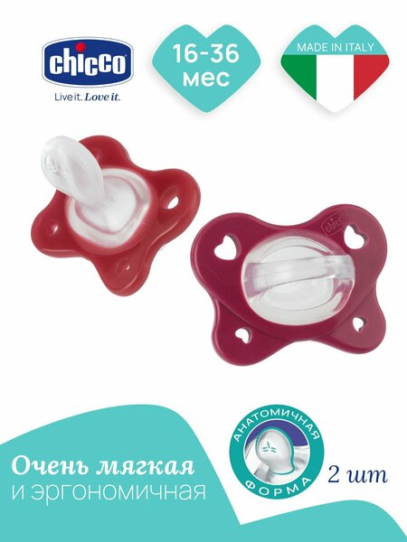 Соска пустышка Chicco PhysioForma Dual Soft — невероятно мягкая пустышка из 100% медицинского силикона для малышей от рождения и до 3 лет. Линейка представлена в разных размерах по возрасту — 0–2 мес, 2–6 мес, 6–16 мес и 16–36 мес, а также в нескольких нежных цветах, чтобы вы могли выбрать лучший вариант для своего ребёнка. Силиконовая пустышка без пластиковых деталей безопасна, гигиенична и удобна для ежедневного использования. Она подходит как для сна, так и для бодрствования: мягко прилегает, не оставляет следов на лице, не натирает кожу и легко принимается малышом. Эргономичная форма не закрывает нос и подбородок, а вентиляционные отверстия позволяют коже дышать и предотвращают раздражения. Эксклюзивная форма PhysioForma, созданная совместно с педиатрами и ортодонтами, помогает располагать язык в правильном положении «вперёд и вверх». Это поддерживает дыхательные пути открытыми даже во сне и способствует физиологически правильному дыханию, развитию прикуса и гармоничному формированию полости рта. Пустышки Chicco PhysioForma мягко развивают важнейшие функции: дыхание, сосание, глотание, жевание и речь. Доказано, что 89% детей принимают пустышку этой формы. Цельносиликоновая конструкция устойчива к повреждениям, не впитывает запахи и проста в уходе. Уникальное покрытие Soft-Sense делает пустышку бархатистой и особенно приятной для малыша. Chicco PhysioForma Dual Soft — это ортодонтическая силиконовая пустышка для новорождённых и детей до 3 лет. Она сочетает физиологичную форму, безопасность и качество Chicco, помогая малышу чувствовать себя спокойно днём и ночью, а маме — быть уверенной в его комфорте и здоровье.