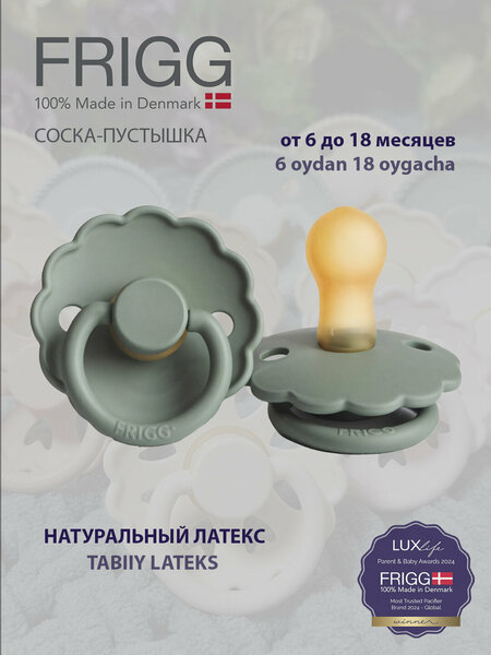 Пустышка FRIGG Daisy Latex Lily Pad 6-18 месяцев сочетает современные материалы и эргономичный дизайн, обеспечивая комфорт и поддержку для растущего малыша. Латексная поверхность приятна на ощупь и безопасна.
