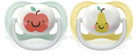 Максимально комфортная пустышка. Philips Avent ultra air оснащена большими вентиляционными отверстиями, чтобы кожа вашего малыша оставалась сухой. Доступна в разных цветах и стилях. Позволяет коже малыша дышать. Большие отверстия для воздуха проветривают кожу малыша, обеспечивая ее сухость во время использования пустышки. Любят дети по всему миру. Когда мы узнали у мам, как малыши реагируют на наши бархатистые силиконовые соски, в среднем 98 % опрошенных сказали, что ребенок легко принимает пустышки Philips Avent ultra soft и ultra air. Соска на 100 % состоит из пищевого силикона. Мы специально выбрали силикон для изготовления наших пустышек ultra soft и ultra air, поскольку это безопасный и инертный материал, широко применяемый в медицинской сфере, который не содержит вредные химические соединения, вредные для эндокринной системы вещества (включая бисфенол-А) и аллергены. Для естественного развития зубов. Наши ортодонтические, симметричные и мягкие силиконовые соски способствуют естественному и правильному развитию полости рта. Комфорт для малыша. Наша текстурированная силиконовая соска, имитирующая форму материнской груди. Стерилизация за 3 минуты для максимального эффекта. Дорожный чехол, поставляемый с нашими пустышками ultra soft и ultra air, выполняет функцию стерилизатора. Вам просто нужно добавить воды и положить его в микроволновую печь. Пустышка вновь будет чистой перед следующим использованием.