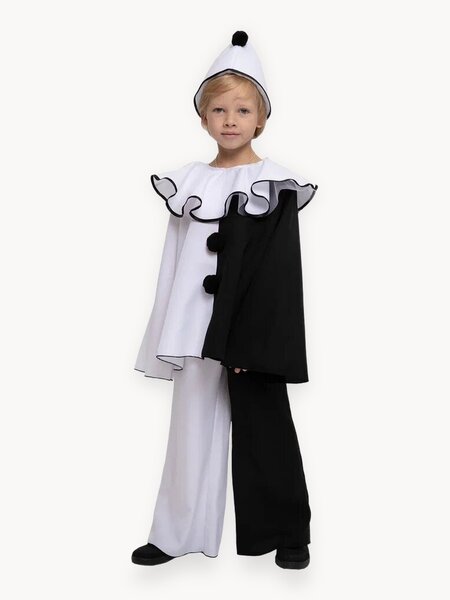 Продается детский карнавальный костюм Пьеро р.116-122. Яркий и оригинальный наряд для мальчика на утренник или праздник. ✅ Полный комплект: Рубашка, брюки, шляпа. ✅ Размер: 116-122 (производитель 30). ✅ Материал: сатин (100% полиэстер). Цвета: белый, черный. ✅ Артикул: 101 014 116. Параметры костюма (для размера 116-122): Рубашка: Длина: 51 см Ширина: 46 см Длина рукава: 46 см Брюки: Длина по внешнему шву: 72 см Длина по внутреннему шву: 48 см Ширина по талии (полуобхват): 25-35 см Ширина низа штанины: 25 см Почему этот костюм Пьеро — отличный выбор? ✨ Комфорт для ребенка: Брюки на удобной резинке не сковывают движения. Колпак с мягкой подкладкой из хлопка и синтепоном греет и не колется. ✨ Универсальность: Детский костюм Пьеро идеально подойдет для Нового года, утренника в школе или саду, карнавала и других праздников. ✨ Полный образ: Для завершения образа добавьте белые ботинки или чешки. Уход за костюмом: Ручная или машинная стирка при 30°C. Отжим до 600 оборотов. Сушить на плечиках вдали от отопительных приборов. Гладить на режиме "Синтетика". Важно! Размерная сетка соответствует росту 116-122 см. Если ребенок полный, рекомендуем взять размер больше. Подарите ребенку незабываемый праздник! Костюм Пьеро сделает его звездой любого мероприятия!