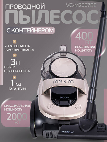 Пылесос для дома мощный 2000Вт с контейнером MANYA VC-M2007BE