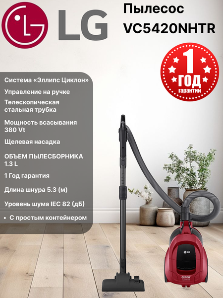 Пылесос LG VC5420NHTR, Тип уборки Сухая, Мощность всасывания 380 Вт, Тип пылесборника Контейнер