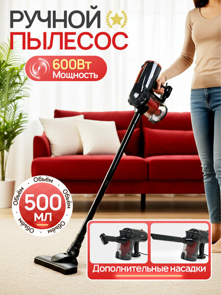 Пылесос, ручной, сухой, от аккумулятора, мощность всасывания 600Вт