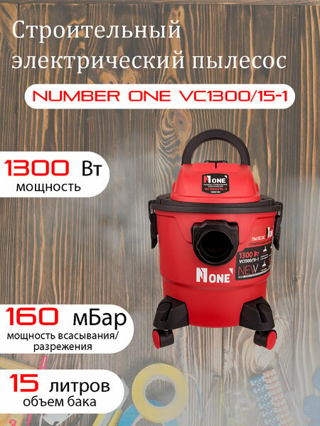 Строительный пылесос NUMBER ONE VC1300/15-1, мощность 1300Вт, функция выдувания