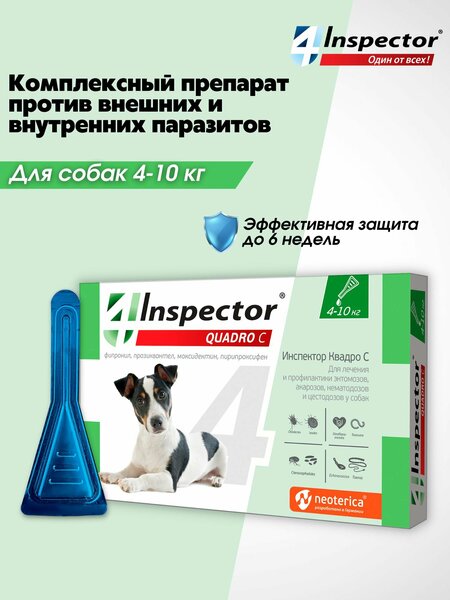 {"widgets":{"@card/UniversalPromoBadge":{"/content/page/fancyPage/universalPromoBadge":{"wrapperProps":{"margins":{"bottom":"3"}},"initialTime":1771291151216,"offerComposeId":"1780704139"}}},"meta":{"/content/page/fancyPage/universalPromoBadge":{"name":"@card/UniversalPromoBadge"}},"collections":{"productServiceSnippets":{"1780704139":{"productSnippet":{"snippetId":"document_id","type":"MODEL_CARD_LAYOUT","productPayload":{"snippetStyle":"NORMAL","title":{"value":"Инспектор Квадро С Капли для собак 4-10 кг. от клещей, блох, гельминтов (1 пипетка)"},"badges":{},"gallery":{"mediaItems":[{"picture":{"baseUrl":"https://avatars.mds.yandex.net/get-mpic/1863454/2a00000199a3dd024ea6c76b39c17ac7aeb4/","width":1500,"height":2000,"title":"Инспектор Квадро С Капли для собак 4-10 кг. от клещей, блох, гельминтов (1 пипетка)"},"type":"IMAGE"},{"picture":{"baseUrl":"https://avatars.mds.yandex.net/get-mpic/4012682/2a00000199a3d420ef226d7d2ab165d5aa93/","width":1500,"height":2000,"title":"Инспектор Квадро С Капли для собак 4-10 кг. от клещей, блох, гельминтов (1 пипетка)"},"type":"IMAGE"},{"picture":{"baseUrl":"https://avatars.mds.yandex.net/get-mpic/16256664/2a00000199a3d3d6ae5d115e8bf5d63c148f/","width":1500,"height":2000,"title":"Инспектор Квадро С Капли для собак 4-10 кг. от клещей, блох, гельминтов (1 пипетка)"},"type":"IMAGE"},{"picture":{"baseUrl":"https://avatars.mds.yandex.net/get-mpic/12219175/2a00000199a3d421a98a3e453e2fe88822a8/","width":1500,"height":2000,"title":"Инспектор Квадро С Капли для собак 4-10 кг. от клещей, блох, гельминтов (1 пипетка)"},"type":"IMAGE"},{"picture":{"baseUrl":"https://avatars.mds.yandex.net/get-mpic/5215925/2a00000199a3d420d429166194d491929de5/","width":1500,"height":2000,"title":"Инспектор Квадро С Капли для собак 4-10 кг. от клещей, блох, гельминтов (1 пипетка)"},"type":"IMAGE"},{"picture":{"baseUrl":"https://avatars.mds.yandex.net/get-mpic/5177644/2a00000199a3d420ea7880deba5abfe89ea8/","width":1500,"height":2000,"title":"Инспектор Квадро С Капли для собак 4-10 кг. от клещей, блох, гельминтов (1 пипетка)"},"type":"IMAGE"},{"picture":{"baseUrl":"https://avatars.mds.yandex.net/get-mpic/12219175/2a00000199a3d420dffbdf05cdf74c21a7f6/","width":1500,"height":2000,"title":"Инспектор Квадро С Капли для собак 4-10 кг. от клещей, блох, гельминтов (1 пипетка)"},"type":"IMAGE"},{"picture":{"baseUrl":"https://avatars.mds.yandex.net/get-mpic/4343038/2a00000199a2f3080ace273bedc41ba81988/","width":1500,"height":2000,"title":"Инспектор Квадро С Капли для собак 4-10 кг. от клещей, блох, гельминтов (1 пипетка)"},"type":"IMAGE"},{"picture":{"baseUrl":"https://avatars.mds.yandex.net/get-mpic/5332261/img_id8122802416434617106.jpeg/","width":1428,"height":1068,"title":"Инспектор Квадро С Капли для собак 4-10 кг. от клещей, блох, гельминтов (1 пипетка)"},"type":"IMAGE"},{"video":{"url":"https://frontend.vh.yandex.ru/player/vOlahMvl3OG0","width":1600,"height":1600,"title":"Инспектор Квадро С Капли для собак 4-10 кг. от клещей, блох, гельминтов (1 пипетка)","preview":{"baseUrl":"https://avatars.mds.yandex.net/get-mpic/16174181/2a00000199a3dd1fbac3a8e98995cb0842aa/","width":1600,"height":1600,"title":"Инспектор Квадро С Капли для собак 4-10 кг. от клещей, блох, гельминтов (1 пипетка)"},"streams":[{"type":"dash","url":"https://strm.yandex.ru/vod/vh-market-upload-converted/vod-content/5417711699337698367/47ac93ae-7244-43b5-8e72-9fa7e5a9aef5/kaltura/desc_d8ab0a88d01c6741122b63b7f95c305b/7870172261009937978/ysign1=666d18a199fae316ed74fe6a2c689563678b03d8ddae975ed4188c65b9bc9f6f,abcID=1632,from=unknown,pfx,sfx,ts=69a0f10f/manifest.mpd"},{"type":"hls","url":"https://strm.yandex.ru/vod/vh-market-upload-converted/vod-content/5417711699337698367/47ac93ae-7244-43b5-8e72-9fa7e5a9aef5/kaltura/desc_d8ab0a88d01c6741122b63b7f95c305b/7870172261009937978/ysign1=5fd9317e11b74af6649aaec076bfea3b9e8bf679bfb35d1d94076f62e98e2996,abcID=1632,from=unknown,pfx,sfx,ts=69a0f10f/master.m3u8"}]},"type":"VIDEO"}]},"rating":{"ratingValue":4.8,"ratingCount":601,"reviewsCount":97,"ratingCountStats":{"cnt1":15,"cnt2":3,"cnt3":16,"cnt4":16,"cnt5":551},"snippet":{"rating":"4.8","type":"product","description":"(601) · 3.1K купили","descriptionList":["(601)","3.1K купили"],"ratingStar":"5"}},"wishlistButton":{"businessId":1176311,"mskuId":676195024,"modelId":1780704139,"oskuId":103542979194},"productRating":{"rating":"4.8","type":"product","description":"(601) · 3.1K купили","descriptionList":["(601)","3.1K купили"],"ratingStar":"5"}},"baobabPayload":{"type":"offer","wareId":"uniq_103542979194","modelId":1780704139,"marketSku":"676195024","snippet_type":"product","isExpress":false,"isUltima":false,"oskuId":103542979194,"snippetTheme":"GRID_FULL","rating":{"rating":"4.8","purchaseCount":"3109","gradesCount":"601","ratingType":"product"}},"themeType":"GRID_FULL"}}}}}