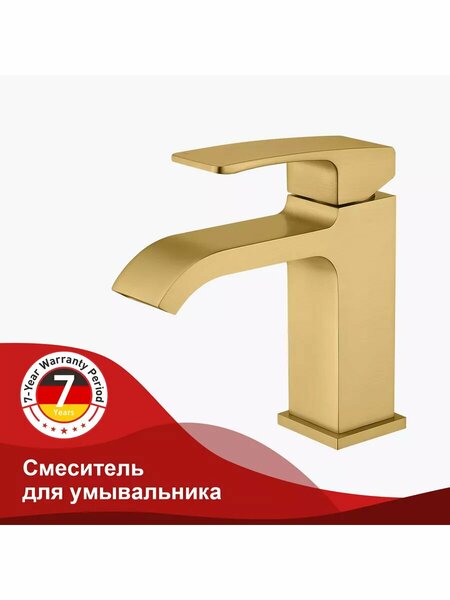 Смеситель для раковины RAGLО имеет повышенную прочность корпуса. Соответствует требованиям международного стандарта. Одна рукоять для регулировки воды. Аэратор гарантирует одинаковый поток воды, сеточка рассеивает напор, вода смягчается. Смеситель устанавливается на гайке, нижняя часть смесителя вставляется в отверстие для монтажа и затягивается гайкой для фиксации. Данный смеситель для умывальника имеет надежный стационарный излив, не меняющий своего положении. Смеситель прекрасно смешивает потоки воды, а помимо этого обладает невысоки показателем шумов. Быстрый монтаж. Гарантия производителя 7 лет. • Материал - латунь • Цвет - сатин золотой • Керамический картридж 35мм - R500.35.01 • Аэратор - R540.11 • Гибкая подводка 55см - M10*1-Г1/2 • Крепежная гайка - R599.02