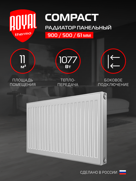 Простота и надежность конструкции стальных панельных радиаторов Royal Thermo серии Compact в сочетании с высочайшим качеством материалов и уровнем технологий, а также высокой теплоотдачей, специальной аэродинамической решеткой и максимальной комплектацией, делают радиатор идеальным объектным решением.