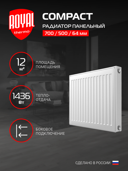 Простота и надежность конструкции стальных панельных радиаторов Royal Thermo серии Compact в сочетании с высочайшим качеством материалов и уровнем технологий, а также высокой теплоотдачей, специальной аэродинамической решеткой и максимальной комплектацией, делают радиатор идеальным объектным решением.