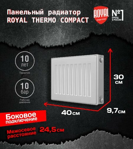 Простота и надежность конструкции стальных панельных радиаторов Royal Thermo серии Compact в сочетании с высочайшим качеством материалов и уровнем технологий, а также высокой теплоотдачей, специальной аэродинамической решеткой и максимальной комплектацией, делают радиатор идеальным объектным решением.