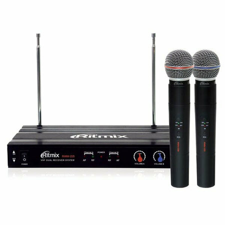 Беспроводная микрофонная система VHF-диапазона с двумя микрофонами в комплекте. Отличается широким диапазоном передаваемых частот.