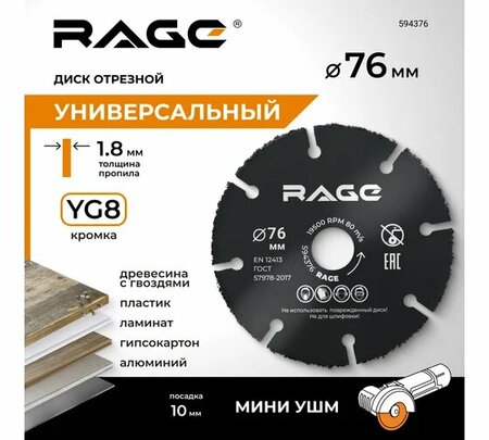 RAGE By VIRA Диск отрезной универсальный для мини УШМ 76 мм 594376