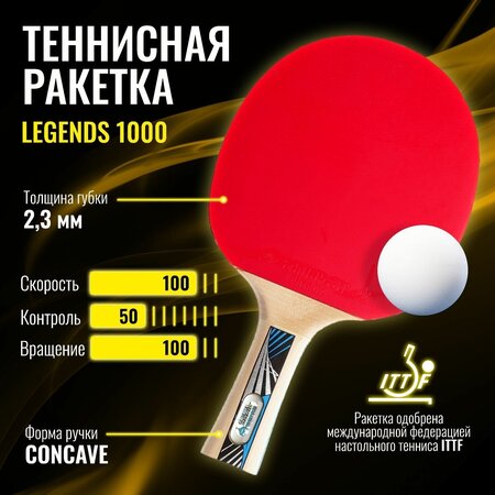 Ракетка DONIC "LEGENDS 1000" рассчитана на тип игры Атака+. Для покрытия используется накладка Energy, а толщина губки 2,3 мм. Форма ручки Concave - ручка, расширяющаяся к концу. Ракетка одобрена Международной федерацией настольного тенниса ITTF. AVS Anti-Vibration-System (AVS) — это амортизирующая система, разработанная Schildkröt. Благодаря AVS улучшается контроль мячика и снижаются вибрации, вызванные энергией удара. Два амортизирующих мягких слоя находятся между ручкой и её покрытием. В результате AVS повышает точность ударов как в оборонительном, так и в наступательном стиле игры. PLS Power Light System (PLS) - это система, снижающая общий вес рукоятки и переносящая центр тяжести на центральную часть благодаря полой конструкции. Таким образом, во время игры ваши удары будут гораздо быстрее и мощнее, а ощущение усталости придёт гораздо позже. ERGO Ручка ERGO (эргономичная) анатомически точно прилегает к руке и помогает игроку чувствовать себя с ракеткой единым целым! Закругленная форма ручки позволяет избежать давления в руке и делает процесс игры более приятным и комфортным. Energy Универсальная резиновая накладка Energy создана по технологии SR (Starter Technology) из каучука. Она достаточно цепкая, что увеличивает контроль над мячиком во время игры, а также долговечная из-за прочности материала. Благодаря этим свойствам вы сможете играть как в атакующей позиции, так и в защитной. FSC Фанера 6 мм, из которой сделана ручка имеет сертификат FSC (Лесной попечительский совет). Он является гарантом ответственного подхода к использованию лесных ресурсов и сохранения лесных экосистем в мировом масштабе.