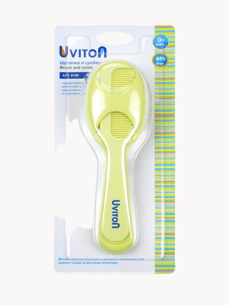Расческа для новорожденных с щетиной с расческой-гребешком от Uviton создана специально для нежного ухода за детскими волосами новорожденного и деток постарше. Расческа с мягкой щетиной и расческой-гребешком позволит наиболее комфортно ухаживать за волосами и кожей головы малыша. Современный дизайн, эргономичная ручка. Расческа детская аккуратно расчесывает, заботится о волосах. C помощью расчески с частыми, но не острыми зубчиками удобно расчесывать запутавшиеся и скатавшиеся волосы, а с помощью щетки можно пригладить их и придать аккуратный вид. Светлая корочка на голове у новорожденного обычное явление, которое возникает из-за дисбаланса в работе сальных и потовых желез. Самый эффективный и безопасный способ избавления от себорейных корочек аккуратное размягчение и вычесывание с помощью расчески. Щетка для новорожденных идеальная для массажа кожи головы, при расчесывании стимулирует кровообращение, помогает избавиться от "корочек". Щеточка для волос для новорожденных изготовлена из мягкой щетины. Антистатическая - не электризует волосы. Закруглённые зубцы безопасны в комплекте: щетка и гребешок (уход для волос). Удобное хранение теперь гребешок не потеряется, его можно прикрепить в щеточке экономя место для хранения аксессуара. Специальные детские расчески не травмируют нежную кожу и бережно воздействуют на мягкие ткани детской головки, стимулируя при этом рост новых волос. Аксессуары для новорожденных соответствуют самым высоким требованиям, предъявляемым к детским товарам, они практичны и просты в уходе. Набор расчесок для малышей изготовлены из прочных безопасных материалов, не содержит Бисфенол А (BPA free). Набор для волос соответствуют требованиям безопасности детской продукции ТР ТС- все наши детские товары для новорожденных безопасны и имеют сертификат соответствия. Вместе с одеждой для новорожденных набор расческа и щетка прекрасно дополнит подарочный комплект на выписку в роддом, а так же это отличный подарок на выписку, на первый день рождения ребенка или Крестины. Цветовая гамма подходит для девочки и для мальчика. Малыш останется доволен, а родители смогут получить максимум радости от тактильного общения со своим малышом! Гигиена и уход товары для малышей, массажная расческа. Размер щеточки: 13см х 6 см х 3 см, щетина 2см; размер гребешка: 13 см х 4 см х 0,5 см.