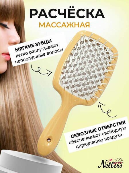 Расческа решает почти все — как будут выглядеть ваши волосы, насколько быстро они будут расти и появятся ли секущиеся кончики. Она сопровождает вас в повседневных делах, путешествиях, деловых поездках, походах на мероприятия. Ежедневное расчесывание прядей необходимо не только для придания им аккуратного вида и необходимой формы, но также требуется для поддержания их здоровья (за счет воздействия на кожу головы). Этот простой на вид предмет помогает волосам выглядеть ухоженно. Пластмассовые расчески самые популярные и распространенные. Расческа мягкая антистатическая подойдет для влажных, мокрых и сухих волос. Благодаря антистатическим свойствам щетки, при расчесывании волосы не электролизуются. Новая современная конструкция и материалы из которых расческа для мокрых создана, делают расческу универсальной и она подходит для любого типа волос, включая нарощенные. Зубья могут быть расположены только с одной стороны. Расческа женская износостойкие и устойчивы к температурным скачкам. Пластик хорошо справляется с основной функцией – расчесывание. Щетка массажная обеспечивает аккуратный массаж кожи головы и улучшает микроциркуляцию. Такое воздействие улучшает кровообращение и ускоряет рост волос. Зубцы расчески с мягкими кончиками не вырывают волосы и не травмируют кожу головы. Расческа туннельная легко скользит по волосам и делает расчесывание более комфортным и приятным. Скелетные щетки предназначены для работы с феном. Эта модель идеально подходит для расчесывания волос во время сушки феном. Отверстия в корпусе пропускают воздух при сушке, распределяют тепло и делают обработку феном безопаснее. Такая щетка расправляет волосы, открывая внутренние слои прически для струи воздуха — а значит, делает сушку более быстрой и эффективной. Расческа продувная расческа тоже будет нагреваться. Но меньше — потому что часть горячего воздуха не разбивается о нее, а проходит насквозь. Ручка удобно лежит в ладони и не выскальзывает. Щетка для волос сконструирована таким образом, что при использовании удобна в условиях салона красоты при работе в мойке: при нанесении уходового крема или при растягивании красителя во время процедуры тонирования. Скелетная расческа иногда применяется мастерами для создания объёма у корней. Продувная щетка для спутанных и мокрых волос рекомендуется для профессионального и домашнего использования! Щётку можно с лёгкостью почистить, поскольку она имеет удобное расположение зубьев. Подарите себе данную расческу для дома или для работы, а также не забудьте подарить своему близкому другу или подруге и они будут Вам благодарны, вспоминая Вас добрыми пожеланиями каждый раз расчесывая волосы и получая огромное наслаждение! Размер 20*8см.