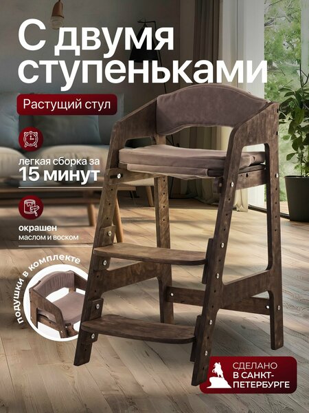Ищете стул детский, который будет соответствовать потребностям вашего ребенка в течение длительного времени? Растущий стул Непоседа, изготовленный из натурального дерева - это то, что вам нужно! Эта модель подходит для детей в возрасте от 2 лет и до школьного возраста, на рост от 80 до 130 см, поэтому вы можете быть уверены, что ваш ребенок сможет использовать ее в течение многих лет. Стульчик детский подстраивается под рост вашего ребенка, чтобы формировать правильную осанку и предотвращать сколиоз. Это очень важно, особенно для маленьких детей, которые только начинают учиться сидеть за столом. Кроме того, растущий стул детский значительно усилен и выдержит вес до 180 кг. Этот детский стул изготовлен из фанеры толщиной 15 мм, покрыт натуральным маслом, что делает его экологически чистым и безопасным для детей. Кроме того, растущий стул для детей очень мобилен, и ребенок может самостоятельно передвигать его по комнате, если нужно. И если вам нужен детский стол и стул, то у нас в магазине есть также растущий стол и стул для детей. Этот растущий стульчик можно использовать как стульчик для кормления или стул для школьника. Наш растущий стул для школьника и малыша аккуратно упакован в коробку из плотного картона, все детали дополнительно упакованы в крафтовую бумагу. Сборка стульчика очень простая, похожа на сборку конструктора, поэтому вы сможете легко и быстро собрать его самостоятельно. Стул деревянный доступен в нескольких цветах, чтобы вы могли выбрать тот, который лучше всего подойдет для вашего интерьера. В комплекте идет подушка на растущий стул на сиденье и спинку. Чехлы подушек изготовлены из мягкого велюра, а наполнитель выполнен из поролона, что обеспечивает максимальный комфорт вашему ребенку во время еды. Чехлы легко снимаются, их можно стирать. Будьте внимательны. Отрегулируйте высоту и глубину деталей под рост ребенка при сборке.
