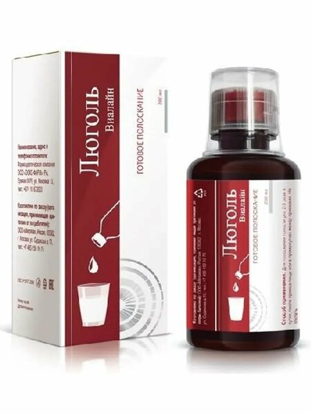 Люголь виалайн раствор для полоскания полости рта - готовый к применению раствор для полоскания на основе экстракта грецкого ореха, экстракта коры дуба и экстракта зверобоя применяется с профилактическими и гигиеническими целями. Компоненты средства обладают антисептическим и противовоспалительным эффектами. Применяется при инфекционно-воспалительных заболеваниях горла, а также слизистой оболочки ротовой полости. Активные ингредиенты: Экстракт зеленого грецкого ореха - уникальный источник природного йода; Экстракт коры дуба - содержащиеся в нем дубильные вещества оказывают вяжущие и противовоспалительное действие; Экстракт зверобоя - используют как вяжущие и антисептическое средство. Рекомендуется в качестве вспомогательного средства при комплексной терапии инфекционно-воспалительных заболеваний слизистой полости рта и горла (ангина, тонзиллит, лорингит, фарингит, афтозный и язвенный стоматит, кровоточивость десен). В качестве дезодорирующего средства для ополаскивания полости рта.
