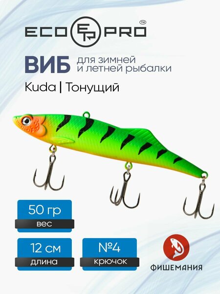 Стабильная игра: Воблер для рыбалки EcoPro Kuda был разработан с учетом требований к стабильности игры, что делает его эффективным в различных условиях.