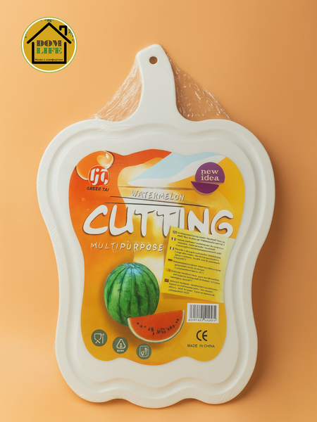 Материал: пластиковая доска, устойчивая к влаге и запахам. Размеры: 36 см в длину, 25 см в ширину. Форма: фигурная, с удобной ручкой и отверстием для подвешивания. Декорирована яркой упаковкой с изображением арбуза и надписями на английском языке (Cutting, Multipurpose). Практичная и многофункциональная — подходит для нарезки овощей, фруктов, хлеба, мяса и других продуктов. Легко моется, долговечная и компактная. Такой аксессуар — удобный и стильный помощник на кухне.