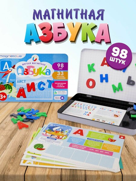Magneticus — это увлекательные и полезные настольные игры для детей от 4 лет и старше. В коллекции — развивающая мягкая магнитная мозаика и обучающие наборы, включая Magneticus азбука с заданиями — мягкий магнитный алфавит. Внутри — яркие магнитные буквы. Мягкие магниты буквы легко крепятся. Каждая игра Магнетикус продумана до мелочей и подходит как настольная игра для детей от 4 лет, так и настольная игра для детей от 7 лет. Магнитный алфавит и развивающие задания от Magneticus превращают обучение в игру. Подарочный набор отличный выбор как подарок для девочки 5 лет. Эти настольные игры помогает легко освоить алфавит, цифры, сочетая обучающие элементы с увлекательной игрой. Игрушки для девочек и игрушки для мальчиков дошкольного возраста, стимулируя творческие способности и развивающее мышление, логику. Набор создан как развивающие игрушки 4 года и идеально подходит как игрушки для мальчиков 5 лет, способствуя совместному времяпрепровождению родителей с детьми или братьев и сестер. Игрушки для девочек 5 лет можно использовать в детском саду или дома, что делает игру универсальной и удобной для разных ситуаций. Эти развивающие игрушки 3 года станет полезным в день рождения ребенка, новый год или любой другой праздник. Пазлы для детей 3 лет заинтересует как девочек, так и мальчиков, но и как подарок воспитателю благодаря ярким магнитным элементам и простоте использования. Настольные головоломки хорошие подарок девочке 5 лет который помогает формировать навыки чтения через игру, что особенно важно на ранних этапах обучения.