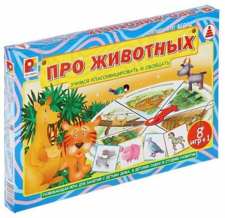 Развивающая игра "Про животных" поможет весело и в игровой форме научить ребенка классифицировать разных животных и обобщать их в группы. Игра - ходилка, которая требует также выполнения разнообразных заданий - на сравнение, на логику, на внимательность. Игра предложит разгадывать загадки, выбирать карточки, соответствующие выпавшей игроку тематике (которую определяет вращающаяся стрелка на поле), и другое. Игра может увлечь всю семью, как детей, так и помогающим им взрослых.