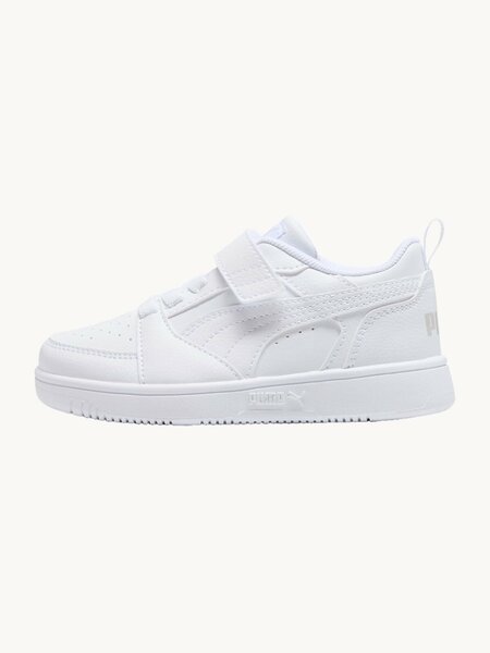 Кеды PUMA из линейки Rebound, модель V6 Lo AC+PS, предназначены для детей. Эти стильные кеды белого цвета и размера 11i UK подходят для активных игр и повседневного использования.