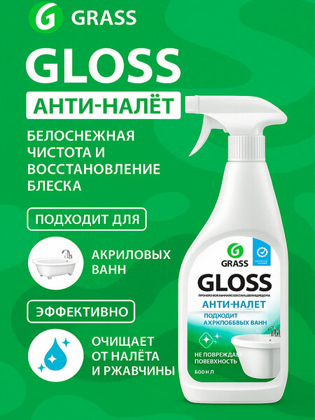 Чистящее средство для акриловых ванн GRASS Gloss 600 мл, антиналет, средство для сантехники