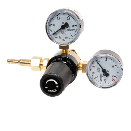 Редуктор углекислотный УР 6 6 KRASS предназначен для понижения давления углекислотного газа и поддержания стабильного расхода в системах, требующих точного контроля подачи газа. Особенности: - Бренд: KRASS - Вес брутто: 0.42 кг - Входное соединение: G3/4" DIN9 - Выходное соединение: М16х1,5 + ниппель Ø 6,3/Ø 9,0 мм - Давление газа на входе: 15 МПа - Материал корпуса: Алюминий - Мембрана: 38,5 мм - Пропускная способность: 15 м³/час - Рабочее давление газа: 0,7 МПа - Рабочий газ: Углекислотный газ - Страна производства: Китай - Тип редуктора: Одноступенчатый Преимущества товара заключаются в его компактности и надежности, что упрощает установку и эксплуатацию в различных условиях, обеспечивая безопасность и эффективность работы. Редуктор углекислотный УР 6 6 KRASS станет надежным компонентом в системе, требующей точного регулирования подачи углекислотного газа.