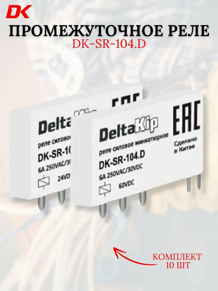 Промежуточные реле DK-SR-104. D предназначены для коммутации и переключения электрических цепей управления постоянного и переменного тока. Интерфейсные промежуточные реле DK-SR-104. D используются в качестве развязывающего (согласующего) элемента между управляющим устройством (терморегулятором, контроллером и пр.) и коммутационным элементом исполнительного устройства, а также для построения схем релейной логики. Реле DK-SR-104. D выполнены в ультратонком корпусе шириной всего 5 мм. Несмотря на свои миниатюрные размеры, они имеют достаточно мощные контакты (6 А), что позволяет использовать их взамен большинства компактных общепромышленных реле, значительно экономя пространство при монтаже. Преимущества промежуточных реле DK-SR-104. D