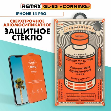 Защитное стекло для iPhone 14 Pro Remax Corning GL-83, спиртовая салфетка из микрофибры, стикеры для удаления пыли, инструкция по наклеиванию, надежная упаковка