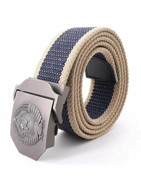 Текстильный ремень с пряжкой СССР NIT Perfect Goods Время путешествовать в прошлое с помощью ремня СССР! Этот уникальный аксессуар привнесет в ваш стиль неповторимую нотку ретро и немного ностальгии по временам Советского Союза. Особенности: 1) Приятная ностальгия Приобретая ремень с пряжкой СССР, вы не только получаете стильный аксессуар для повседневного использования, но и возможность ощутить приятную ностальгию. Этот ремень станет отличным подарком для вас или ваших близких и наполнит их положительными эмоциями. 2) Уникальная пряжка Особенность ремня - его уникальная пряжка, изготовленная из прочного металла. Размеры пряжки 7х5 см, а ее вес составляет 78 грамм. На пряжке изображен герб СССР, который включает земной шар, серп и молот, солнце и колосья. Дополнительно, на гербе есть надпись - лозунг Карла Маркса и Фридриха Энгельса: «Пролетарии всех стран, соединяйтесь!» 3) Крепкое полотно Сам ремень изготовлен из плотного материала - холста. Он очень прочный и практически невозможно порвать. Его размеры составляют 140х3.8 см, а вес - 135 грамм. Благодаря своей лаконичной расцветке, ремень будет смотреться хорошо как с джинсами, так и с классическими брюками. 4) Качественное крепление Крепление ремня осуществляется с помощью зажима. Пряжка плотно крепится на полотно благодаря крепким зубчикам на корпусе. Это гарантирует, что ремень будет надежно держаться и не раздражать своего владельца. 5) Разнообразие цветов Ремень с пряжкой СССР доступен в разнообразии цветов. Вы сможете выбрать из 12 вариантов: белый, красный, темно-синий, темно-коричневый, хаки, черный, синий с бежевым, зеленый с бежевым, коричневый с бежевым, темно-синий с бежевым, черный с бежевым, черный с серым. Таким образом, у каждого будет возможность найти ремень, который идеально подойдет под его предпочтения и гардероб. Погрузитесь в эпоху прошлого, ощутите дух Советского Союза и добавьте нотку ретро в свой стиль с мужским текстильным ремнем с пряжкой СССР!