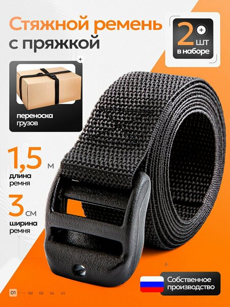 Ремень стяжной с пряжкой 3см длина 1,5 м набор 2 шт в комплекте